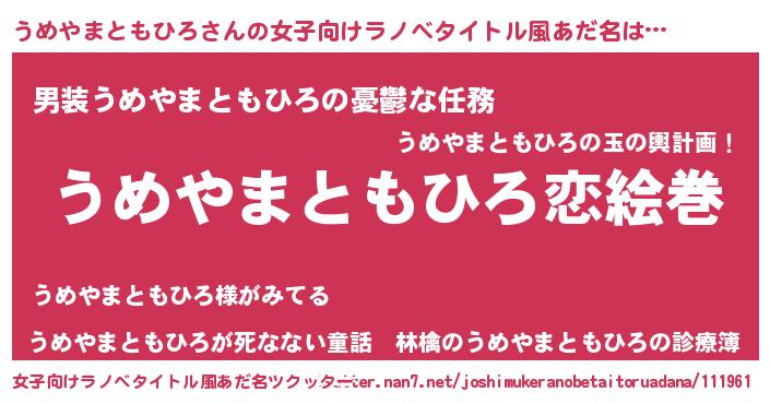 | 男性向けラノベタイトル風あだ名 | 『ノーゲーム・ノーウメヤマトモヒロ』 |