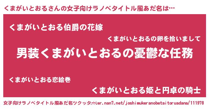 | 意味不明あだ名 | 『くまがいとおるフォーエバー』 |