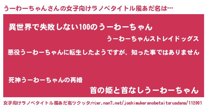 | ヘコむあだ名 | 『うーわーちゃん(笑)』『うーを』 |
