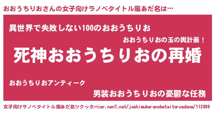 | 男性向けラノベタイトル風あだ名 | 『ノーゲーム・ノーオオウチリオ』 |