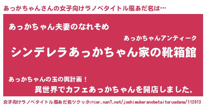 | 男性向けラノベタイトル風あだ名 | 『緋弾のアッカチャン』 |