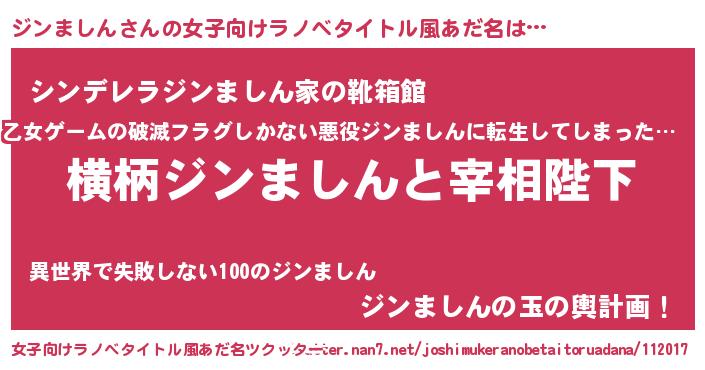 | 男性向けラノベタイトル風あだ名 | 『ジンましんに滅ぼされるだけの簡単なお仕事です』 |