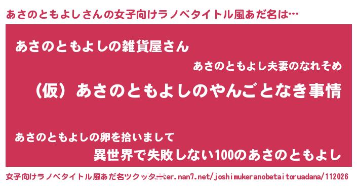 | 恥ずかしいあだ名 | 『プリティーあさのともよし』『あさちん』 |