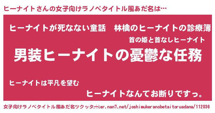 | 胡散臭い通販商品みたいなあだ名 | 『あなたにだけ特別に提供する100年もののヴィンテージワイン…その名も「ヒーナイト」』 |