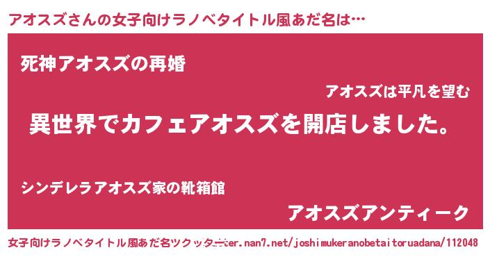 | 男性向けラノベタイトル風あだ名 | 『誰もが恐れるあのアオスズが、ぼくの専属メイドになるようです。』 |