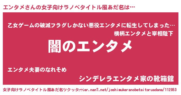 | 男性向けラノベタイトル風あだ名 | 『Re:エンタメから始める異世界生活』 |