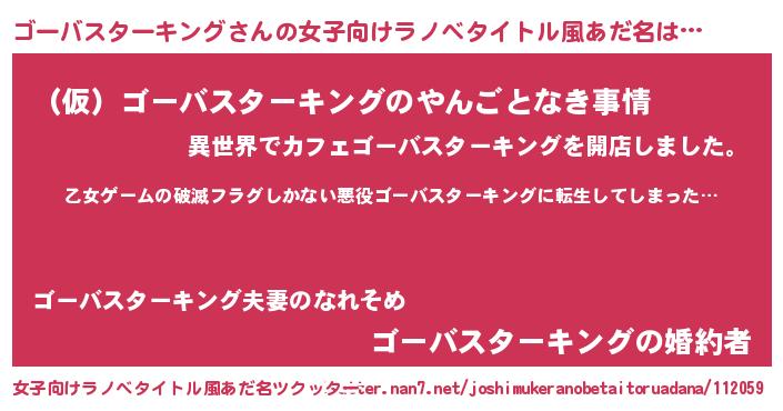 | 男性向けラノベタイトル風あだ名 | 『この素晴らしい世界にゴーバスターキングを!』 |