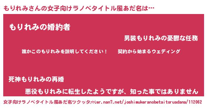 | 胡散臭い通販商品みたいなあだ名 | 『億万長者になれるブレスレット…その名も「もりれみ」』 |
