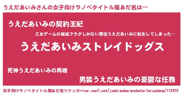 | 男性向けラノベタイトル風あだ名 | 『Re:うえだあいみから始める異世界生活』 |