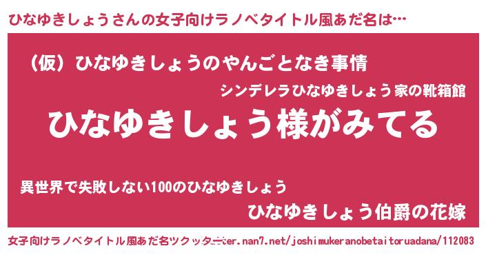 | 男性向けラノベタイトル風あだ名 | 『ひなゆきしょうの嫁は女の子じゃないと思った?』 |