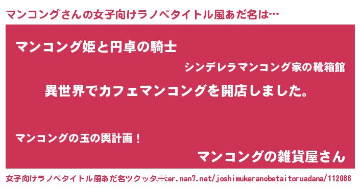 | 胡散臭い通販商品みたいなあだ名 | 『前代未聞の健康食品…その名も「マンコング」』 |