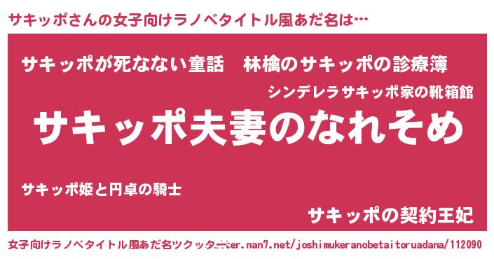 | 男性向けラノベタイトル風あだ名 | 『おまえをオタクにしてやるから、俺をサキッポにしてくれ! 』 |