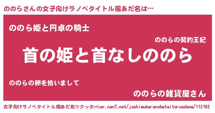 | 男性向けラノベタイトル風あだ名 | 『はたらくののらさま!』『ののらの憂鬱』 |