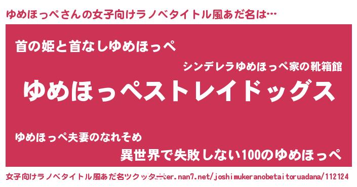| 男性向けラノベタイトル風あだ名 | 『Re:ゆめほっぺから始める異世界生活』 |