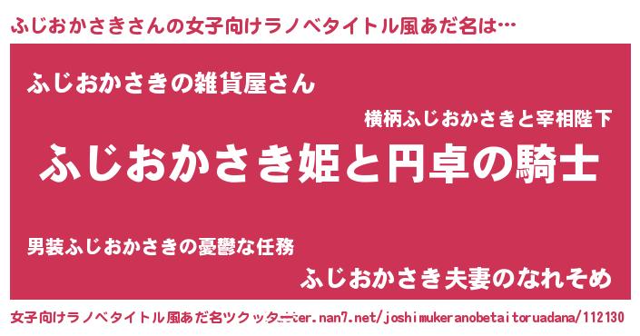 | 男性向けラノベタイトル風あだ名 | 『フジオカサキアートオンライン』 |