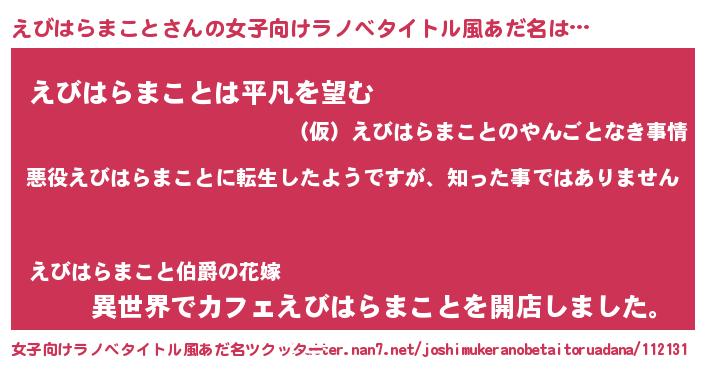 | 胡散臭い通販商品みたいなあだ名 | 『あなたにだけ特別に提供する限定10本のレアな日本酒…その名も「えびはらまこと」』 |