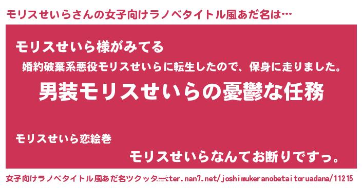 | 男性向けラノベタイトル風あだ名 | 『うちのモリスせいらが世界を掌握している!』 |