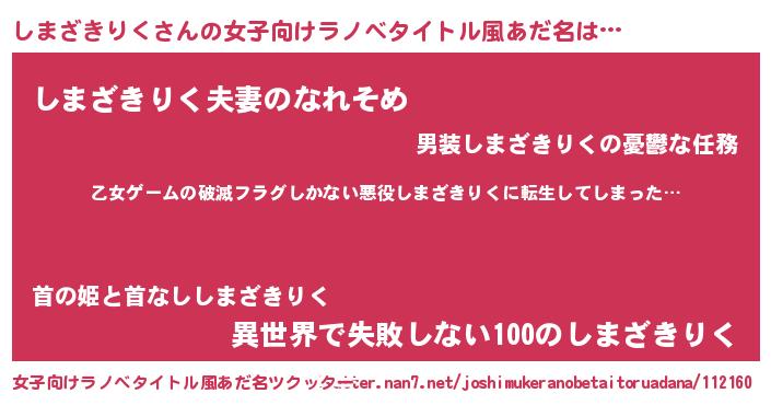 | 男性向けラノベタイトル風あだ名 | 『魔弾の王としまざきりく』 |