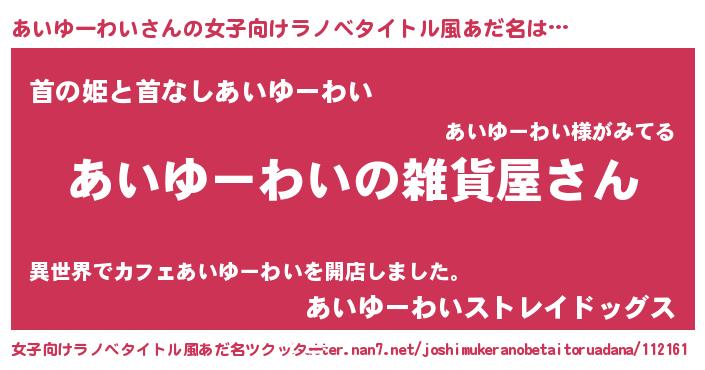 | 男性向けラノベタイトル風あだ名 | 『やはりあいゆーわいの青春ラブコメはまちがっている 』 |