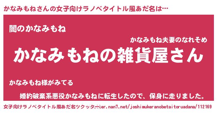 | 男性向けラノベタイトル風あだ名 | 『やはりかなみもねの青春ラブコメはまちがっている 』 |