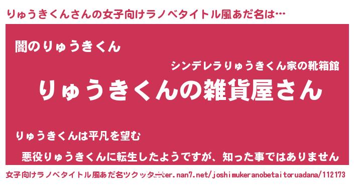 | 男性向けラノベタイトル風あだ名 | 『やはりりゅうきくんの青春ラブコメはまちがっている 』 |