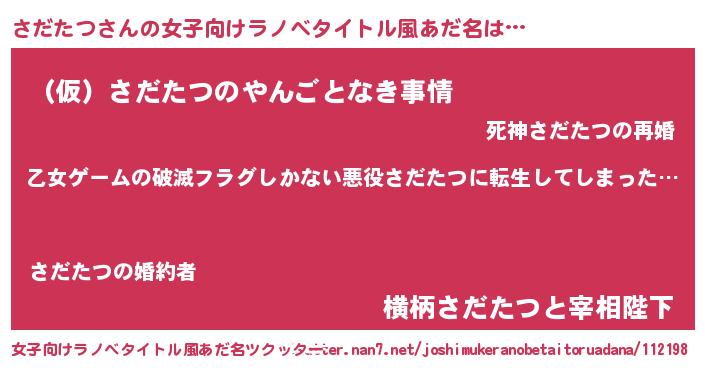 | 男性向けラノベタイトル風あだ名 | 『魔弾の王とさだたつ』『さだたつの憂鬱』 |