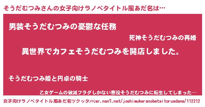 ヘコむあだ名 | 『そうだむつみ(小並感)』『そうもー』 |