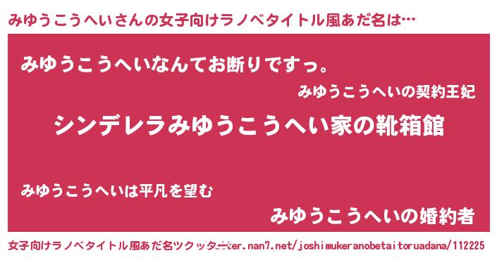 | 男性向けラノベタイトル風あだ名 | 『緋弾のミユウコウヘイ』 |