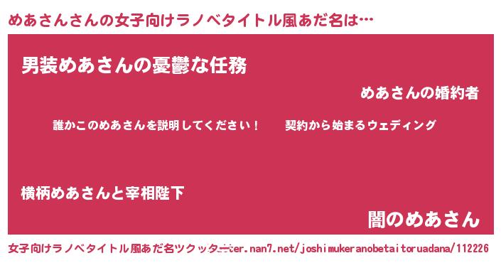 | 男性向けラノベタイトル風あだ名 | 『メアサンアートオンライン』 |
