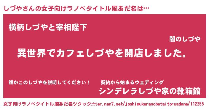 | 意味不明あだ名 | 『永久保存しづや』『自称しづや』 |