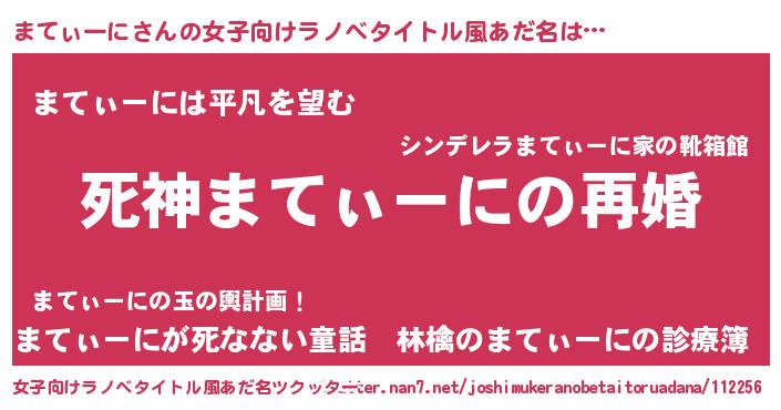 | 男性向けラノベタイトル風あだ名 | 『ノーゲーム・ノーマティーニ』 |