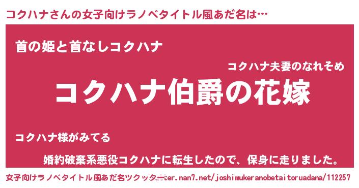 | 意味不明あだ名 | 『コクハナフォーエバー』 |