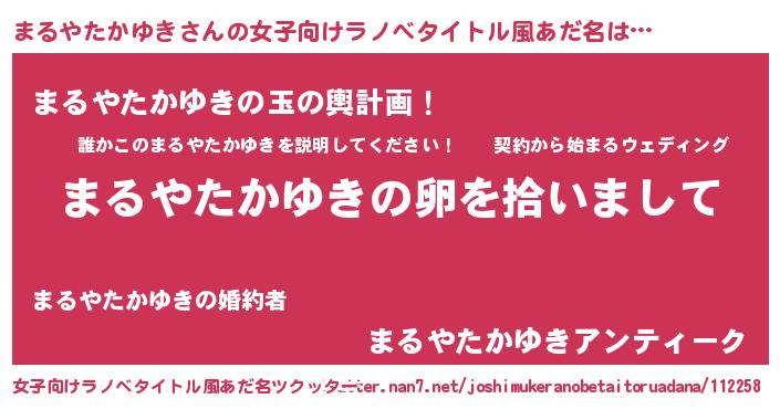 | 男性向けラノベタイトル風あだ名 | 『ダンジョンにまるやたかゆきを求めるのは間違っているだろうか』 |