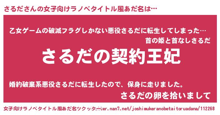 | 胡散臭い通販商品みたいなあだ名 | 『来世でも幸せになれる健康食品…その名も「さるだ」』 |