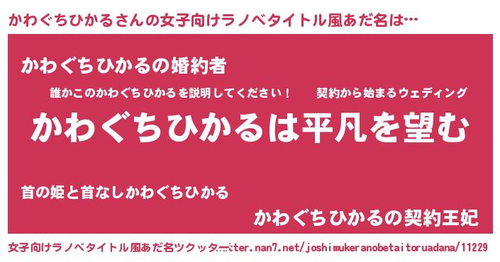 | 男性向けラノベタイトル風あだ名 | 『ダンジョンにかわぐちひかるを求めるのは間違っているだろうか』 |