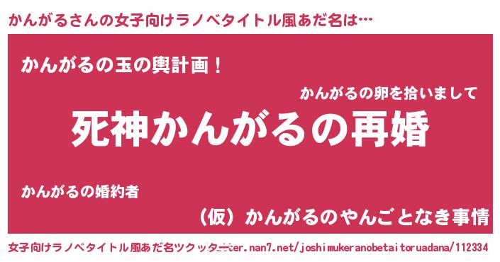 | 男性向けラノベタイトル風あだ名 | 『ノーゲーム・ノーカンガル』 |