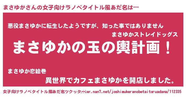 | ヘコむあだ名 | 『まさゆか(笑)』『まさふぇ~』 |