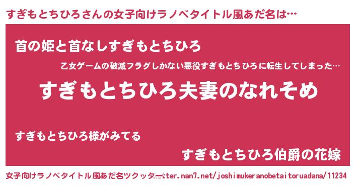 | 男性向けラノベタイトル風あだ名 | 『おまえをオタクにしてやるから、俺をすぎもとちひろにしてくれ! 』 |