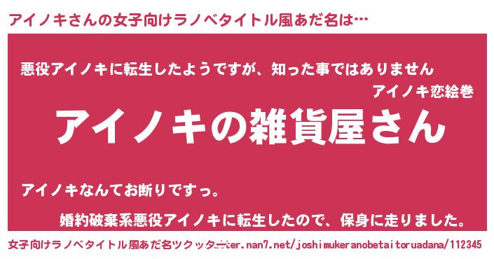 | 男性向けラノベタイトル風あだ名 | 『やはりアイノキの青春ラブコメはまちがっている 』 |