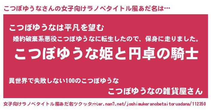 | 男性向けラノベタイトル風あだ名 | 『こつぼゆうなの憂鬱』 |