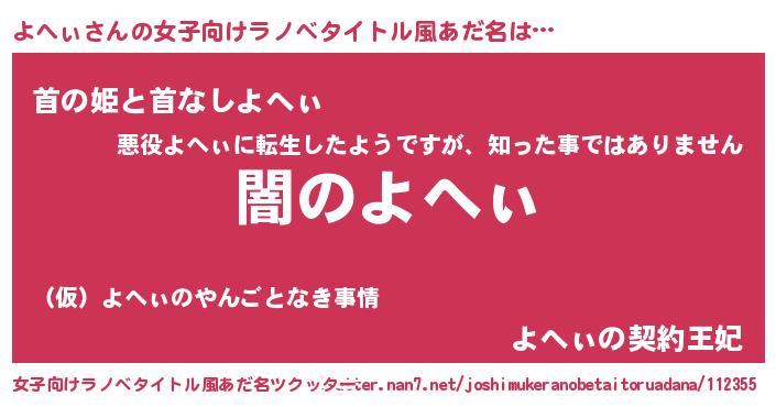 | 意味不明あだ名 | 『自称よへぃ』『永久保存よへぃ』 |
