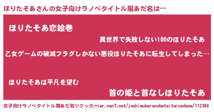 | 意味不明あだ名 | 『住所不定無職ほりたそあ(7歳)』 |