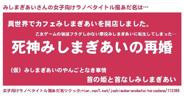 | 伝説のあだ名 | 『救世主となる占い師みしまぎあい』 |