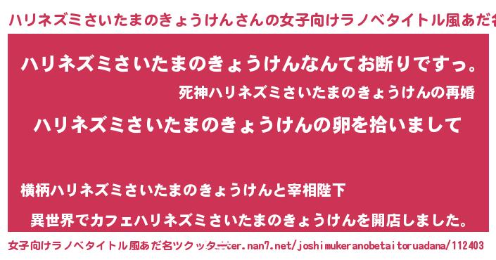 | 男性向けラノベタイトル風あだ名 | 『ダンジョンにハリネズミさいたまのきょうけんを求めるのは間違っているだろうか』 |