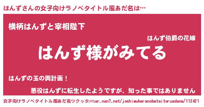 | 意味不明あだ名 | 『とにかく怪しいはんず』『自称はんず』 |