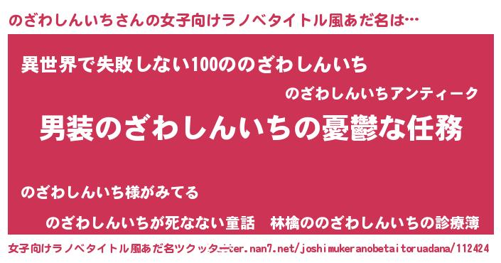 | 男性向けラノベタイトル風あだ名 | 『うちののざわしんいちが世界を掌握している!』 |
