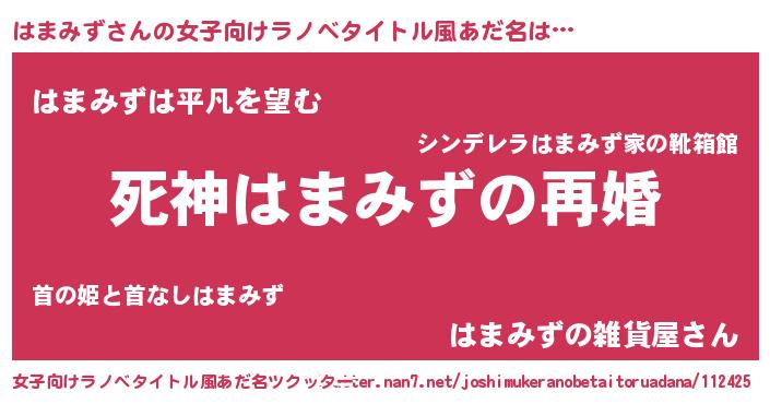 | ヒーロー風カッコイイあだ名 | 『天空の使者はまみず』『暗黒騎士ハマ』 |