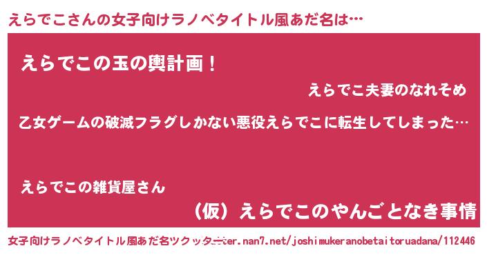 | 意味不明あだ名 | 『住所不定無職えらでこ(8歳)』 |
