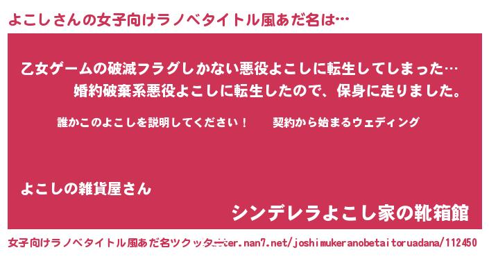 | 男性向けラノベタイトル風あだ名 | 『ヨコシアートオンライン』 |