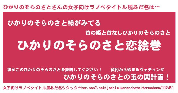 | 男性向けラノベタイトル風あだ名 | 『ノーゲーム・ノーヒカリノソラノサト』 |